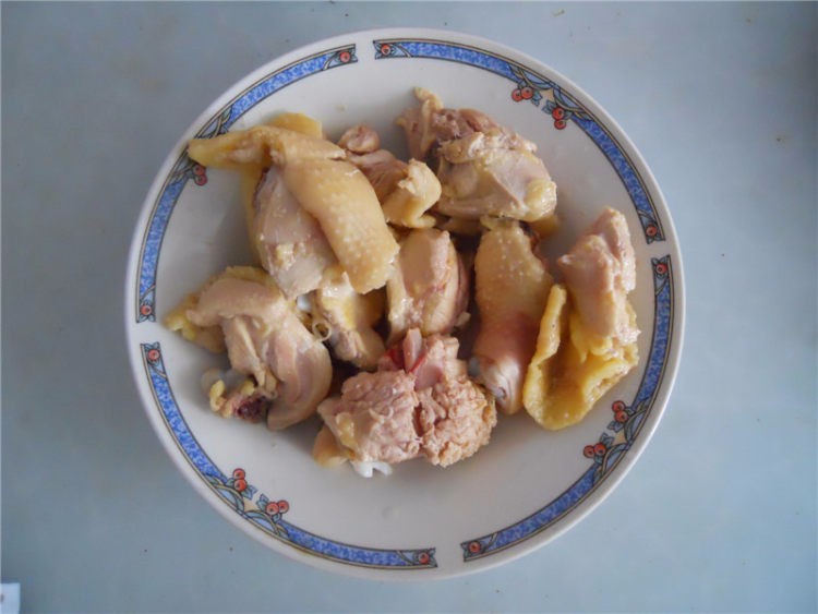 4.煮几分钟后,浮沫不再增多,将鸡肉捞出,注意要在水滚的情况下捞,这样捞出鸡肉时不容易粘上浮沫。