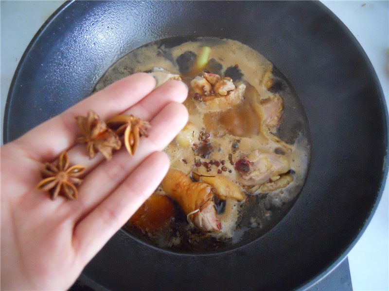 2.冷水下锅,将水煮开,让鸡肉随水温的上长而排出血水与杂质。