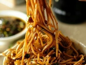 芝麻酱三大勺,加入适量香油调匀,生抽,老抽,盐,鸡粉,加入少许水调成流动状的芝麻酱