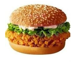 把面包放到一张纸上面,在面包的正面上涂上15克沙拉酱,在沙拉酱上面再放置15克的美生菜,然后再放上刚炸制好的鸡腿肉,把面包的后盖盖上