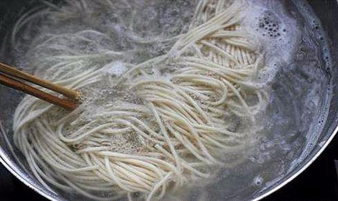 把鸡腿肉鸡胸肉等放进面汤中煮熟