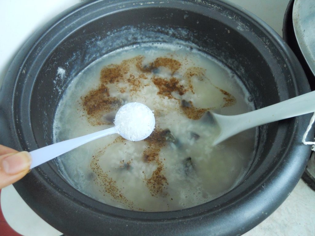 米粥熬好后,关火,放入味精,搅拌均匀。