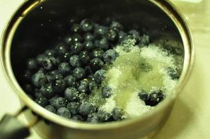 蓝莓加糖和柠檬汁腌制出水。