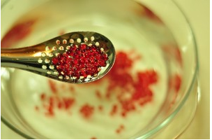 【功效】分子料理,日趋流行,即是利用仪器或工具或安全的食品添加剂改变食材的物理化学性质,对我这个从化学研究室走出来的人来说,就是简单的实验了,得心应手。只要注意操作过程的一些关键点,没有化学背景的人也可以成功。让我们在厨房做实验吧!先来做简单经济的爆浆果汁鱼子酱吧!