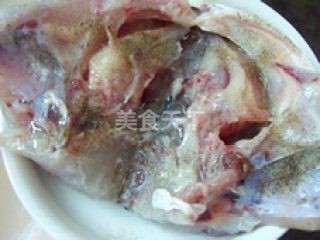 鱼头加盐搓洗干净,冲掉盐水,撒胡椒粉一茶匙,食用油半汤匙,盐半茶匙,鸡精半茶匙,搓揉均匀,腌渍十分钟。