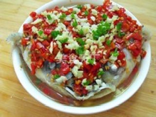 铺上剁椒蒸八分钟虚火蒸两分钟。