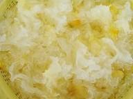 银耳入冷水浸泡2小时,剪去根部洗净,撕成小朵。