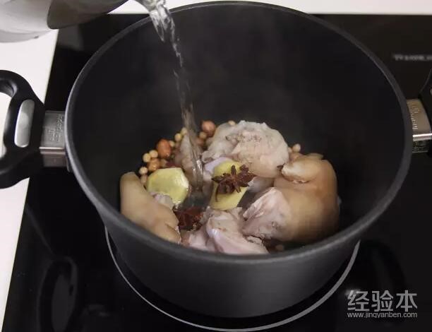 在锅中加入猪蹄和清水,大火煮5分钟,猪蹄去腥,捞出备用