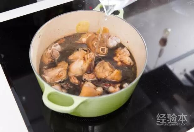 .加入料酒、酱油、糖、八角、话梅、清水,大火煮沸后,小火焖2小时