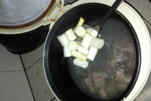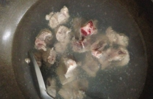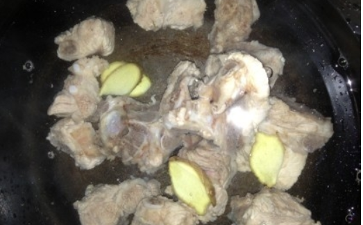 将排骨倒入锅中,加入清水,几片生姜放点盐煮