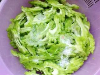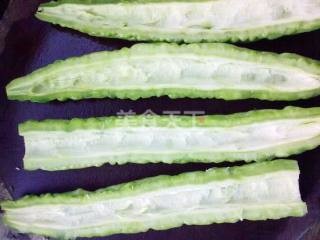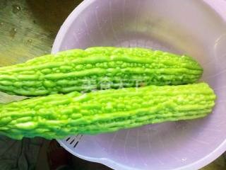 苦瓜泡水10分钟,洗净备用。