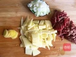 1.准备食材如下:牛肉,土豆,葱,姜。