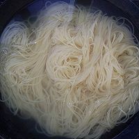 2. 锅中的水烧开,煮冷面。煮好的冷面反复用凉水投凉,备用