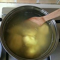 3. 烧开水,把小饼下锅煮3到5分钟,留下四分之一生面,别全煮了