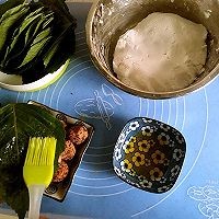1. 糯米粉加水,和成面团。苏子叶洗净,豆沙揉成小球,我用的是自己煮的红豆馅