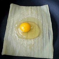 2. 20秒左右翻面,打入鸡蛋铺匀在冷面片上