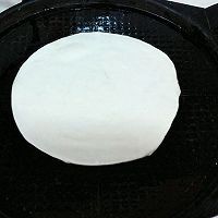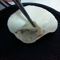 9. 带饼鼓起来后用筷子挑开,倒入蛋液。
