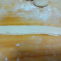 1. 面粉加少量盐总温水活成饺子面软硬的面团,醒发半个小时后分成100克左右的面团,将面团揉匀搓成长条。