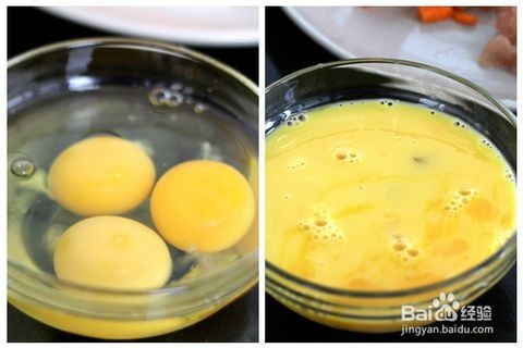 鸡蛋磕入碗内,打散备用