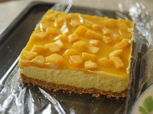 3小时后,放上芒果肉做装饰(但果肉要弄干水分)