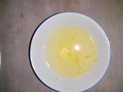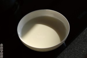 用牙签小心的挑开奶皮,把牛奶倒进蛋清里,把奶皮留在碗中 把牛奶和蛋清搅拌均匀