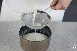 然后把和蛋清混合后的奶液过筛