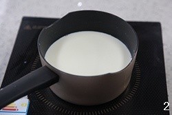 将400ML牛奶倒入锅中加热,加热过程中放入白砂糖并搅拌好
