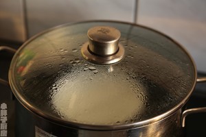 再取一大锅,烧水,水沸后放上蒸架。 将碗置于蒸架上,盖上盖子蒸25分钟,然后关火,再静置10分钟。