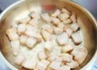 锅入少许油,热后倒入五花肉,小火煸炒至五花肉的外沿呈微焦色;