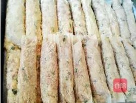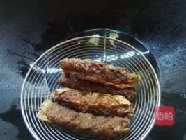 卷好的五香卷入油锅炸制金黄色即可捞出控油