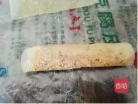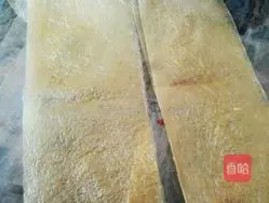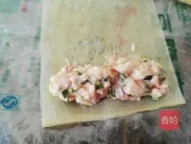 取一张豆皮放平,将调好的料均匀放在豆皮一头