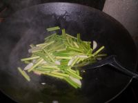 倒入蒜薹翻炒。