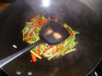 翻炒两分钟后加入红椒继续翻炒。