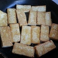 平底锅内放色拉油,烧热后放入豆腐,煎至两面金黄色