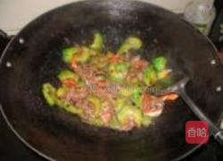 重新起锅,加油烧热,下豆豉炒香,然后下凉瓜一起煸炒