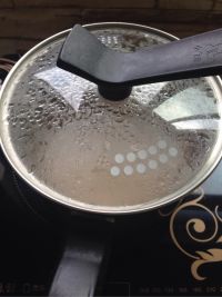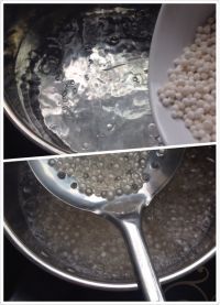 1:西米不要用水洗。 2:水烧开后再倒西米进去煮,边煮边搅拌以免粘锅,不要再盖锅盖了。 3:西米煮至中间还有小白点关火,盖上锅盖焖20分钟左右,如果发现中间还是有小白点,可以再开火煮一下,西米很容易煮透。