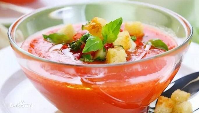 菜式介绍 西班牙番茄冷汤是一道汤类美食,以西红柿、洋葱等为原料,以胡椒粉、盐等为调料。该道菜通过将食材倒入锅中炖煮制作而成。 制作厨师 暂无厨师介绍 适合体质 平和质 阳虚质 阴虚质 适合性别 男女皆适 适合年龄 5-70 适合季节 四季皆宜