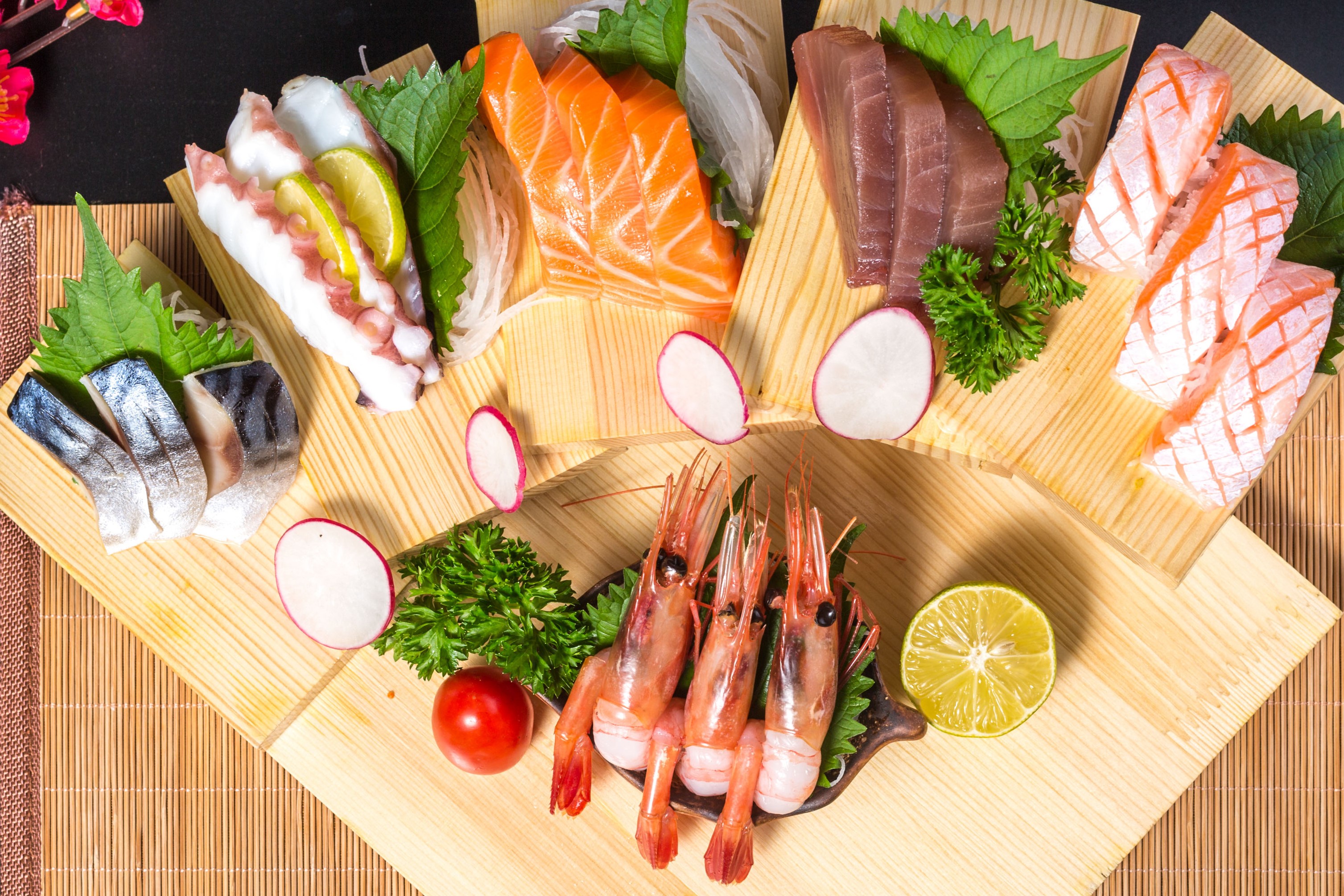 生鱼片的丰富碰撞,肉质雪白中带粉嫩,口感鲜滑细腻,蘸上的酱汁都会滑落而下。一口咬下去,鱼腩油香四溢,却又不失嚼劲。虾肉肥硕,富有弹性,组成一盘纯正的海味