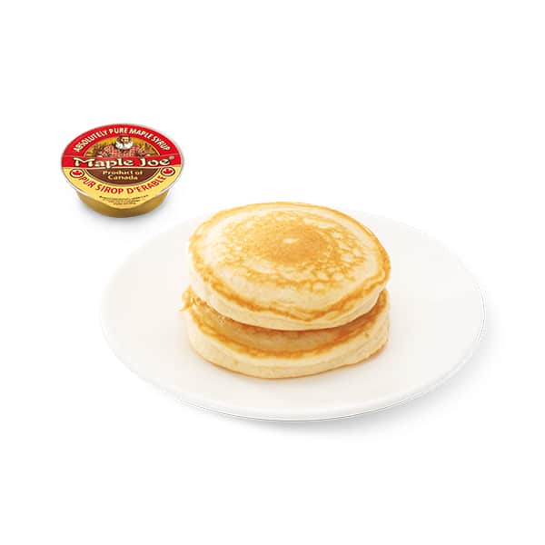 两片轻盈酥松的美式松饼搭配加拿大进口槭树糖浆(枫糖浆),层层甜蜜令人陶醉
