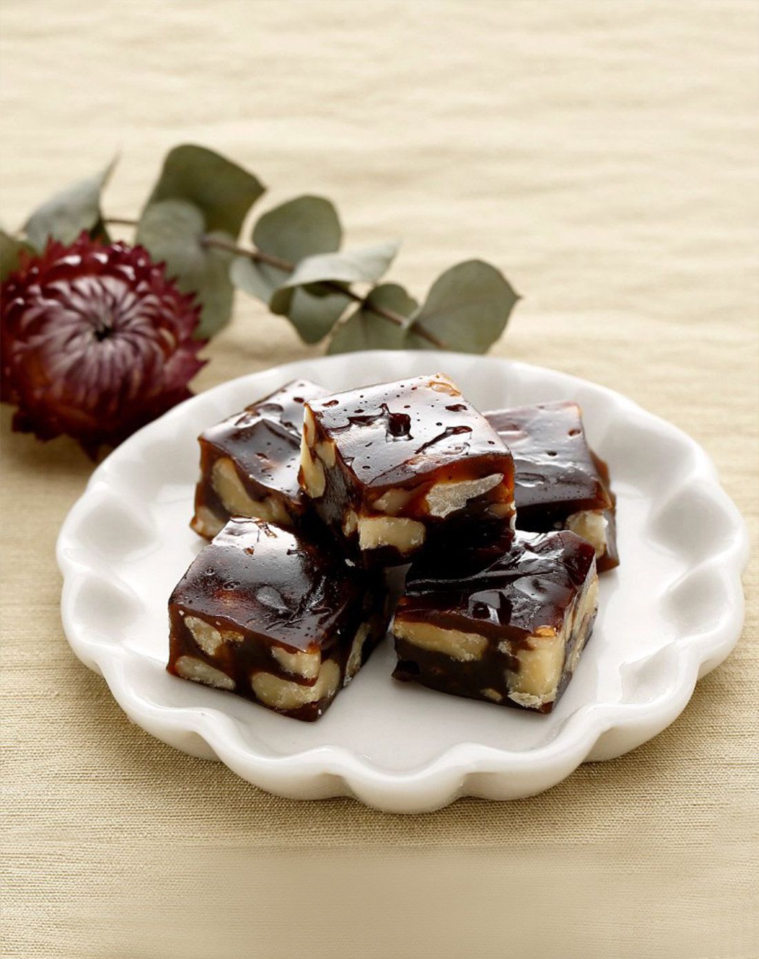 核桃糕是浙江地区传统特色糕点,浙江特产茶食四珍中的一珍,它的配料有白砂糖、麦芽糖、核桃仁、玉米淀粉、黑芝麻、枸杞子、黄酒等,并有三种口味,分别是阿胶合桃糕、桂圆合桃糕和南枣合桃糕。 它的特点是质地细腻