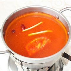 茄锅底选用新疆上好的番茄,经剥皮去籽后加调味品炒制再配上精心熬制的高汤精制而成,新疆番茄因光照时间长、昼夜温差大,口味及营养都居全国之首。 番茄火锅的味道清香,可以涮食海鲜、肉品、各类蔬菜。在涮锅前还