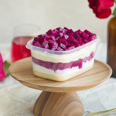 新鲜的越南红心火龙果,切成大块添加在丝滑淡奶油中,配以薄皮蛋奶,食欲满满!