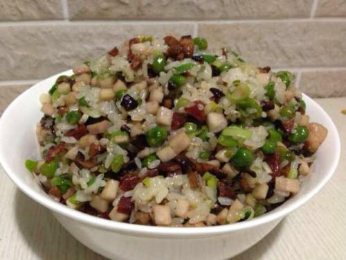 菜式介绍 糯米用电饭煲煲熟备用,再食材切成碎粒,锅烧热下油、干尤鱼爆香,下其他材料继续煸炒,下糯米饭炒继续翻炒,用生抽、鸡精、盐、胡椒粉调味,炒匀,炒香。 制作厨师 暂无厨师介绍 适合体质 痰湿质 适合性别 男女皆适 适合年龄 全年龄 适合季节 四季