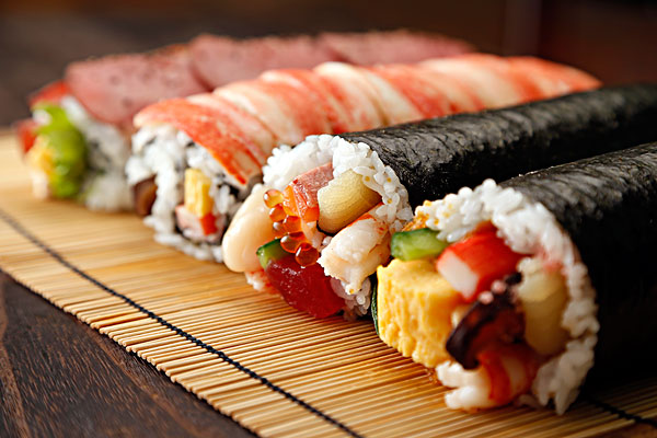 一式3件,其中裹入蟹柳、火腿、肉松、青瓜等多种食材,带来味觉的盛宴