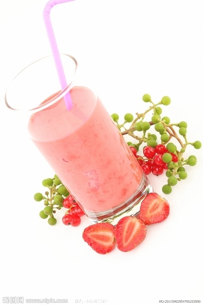 刚摘下的草莓榨成的汁
