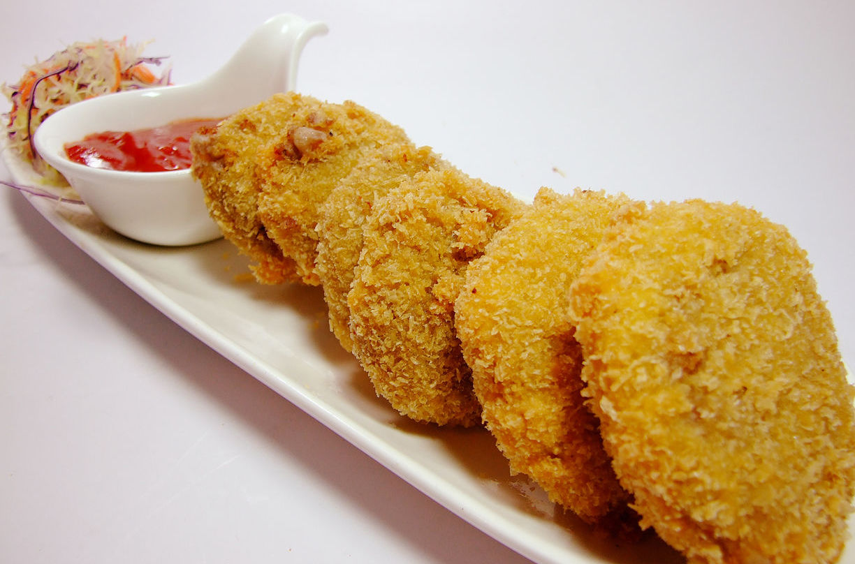 在奶油和面粉制成的酱中加入碎菜和肉(用马铃薯泥亦可),冷却后捏成圆柱形,再抹上小麦粉、蛋汁以及面包粉,并且用油炸。 但是日本的家庭却把这种舶来品改良成为自己的口味,改用马铃薯泥,加入炒好的洋葱和肉末,