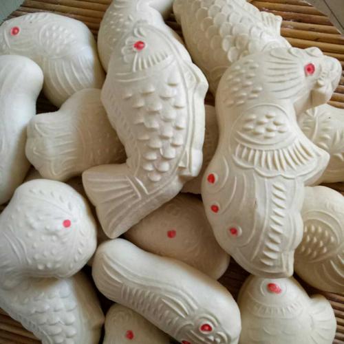 华北地区特有的面食。是当地招待客人的特色食品,和长长饽饽一样,是逢年过节走亲访友必备的礼物。 花花 花花 做花花需要花花模子,花花模子是用枣木等刻制出来的,有很多种图案,常见的有桃、鱼、元宝、囍字等
