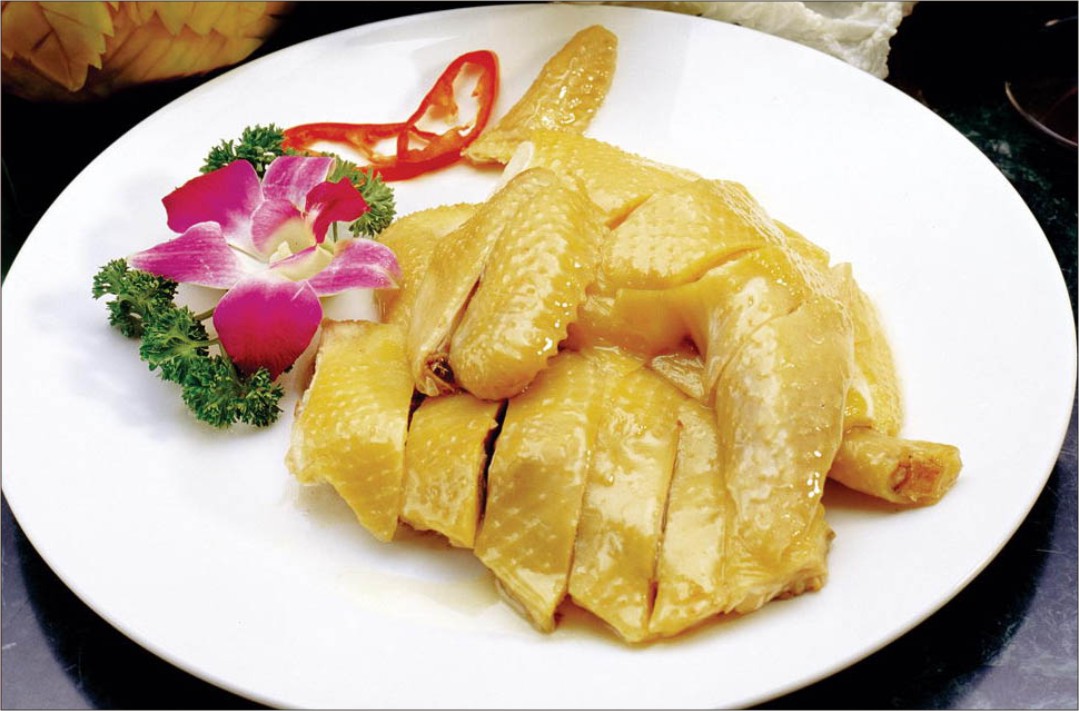 白切鸡又叫白斩鸡,是中国八大菜之一粤菜系鸡肴中的一种,始于清代的民间酒店。