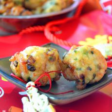 以虾为主料做成的虾枣,颜色金黄,滋味鲜美,入口酥松,时不时还能嚼到一粒粒的虾仁非常弹牙。