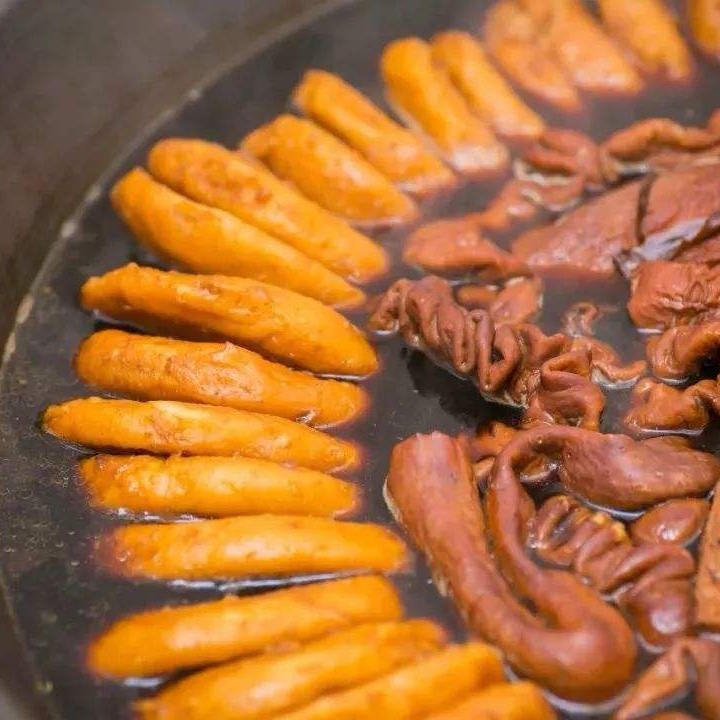 卤煮火烧是北京传统特色小吃,起源于北京城南的南横街。据说光绪年间因为用五花肉煮制的苏造肉价格昂贵,所以人们就用猪头肉和猪下水代替,经过民间烹饪高手的传播,久而久之,造就了卤煮火烧。卤煮火烧是将火烧和炖